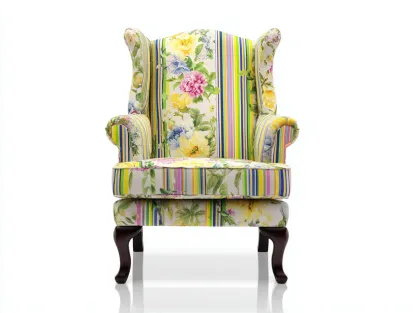 Fauteuil à oreilles en tissu fleuri 85x90x110 cm - multicolore - style classique pour salon